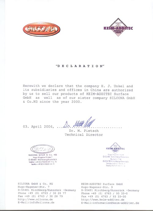 Keim-Additec與翁開爾公司是全方位的合作伙伴,雙方從1996年開始合作,翁開爾作為其中國及東南亞總代理,全權負責該區(qū)域產品銷售及市場推廣。