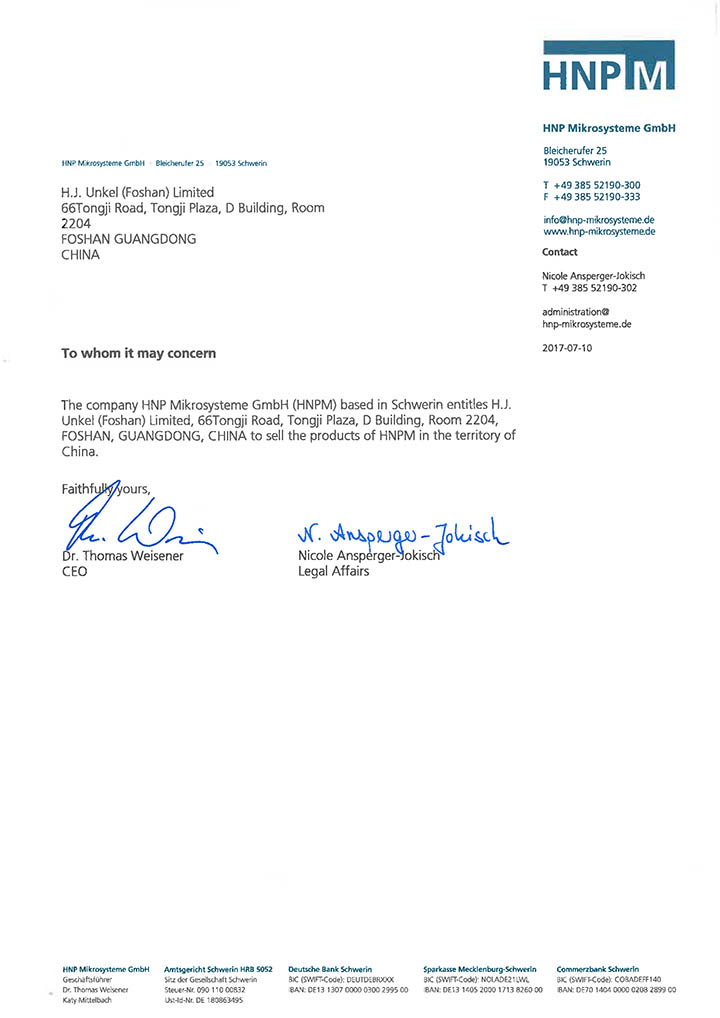 翁開爾公司是德國彗諾HNPM的中國總代理商。