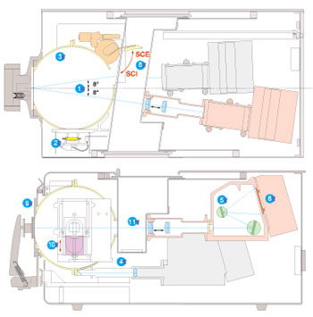| 照明/受光系統(tǒng) | 反射:d/8(漫射照明,8°方向接收) SCI(包含鏡面反射光)/SCE(不包含鏡面反射光)機械切換測量(ISO7724/1、DIN5033 Teil7、JIS Z8722 條件C) 透射:d/0(漫射照明,垂直方向接收) |
