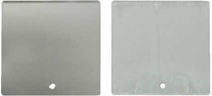 圖一:涂層厚度為9μm的測(cè)試板:沒(méi)有經(jīng)過(guò)鹽霧腐蝕測(cè)試(左)和根據(jù)DIN EN ISO 9227-NSS標(biāo)準(zhǔn)鹽霧測(cè)試1200小時(shí)后(右)。右邊測(cè)試板沒(méi)有腐蝕現(xiàn)象