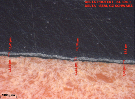 面漆的作用是加強(qiáng)零部件的腐蝕保護(hù)和賦予涂層更多功能特性,如增加化學(xué)或機(jī)械阻力,著色或確定螺紋零件摩擦系數(shù)。片狀鋅基(達(dá)克羅)涂層厚度僅有8-20μm。根據(jù)標(biāo)準(zhǔn)DIN EN ISO 9227-NSS,該涂層能保護(hù)零部件在鹽霧試驗(yàn)中1000小時(shí)以上不受賤金屬(紅銹)的腐蝕。