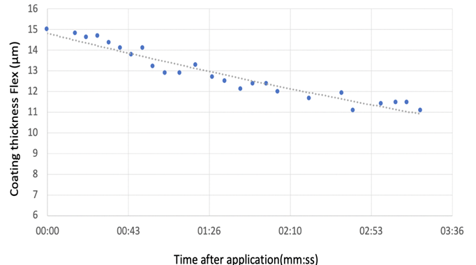 圖七:使用coatmaster Flex測(cè)量鋅片固化前底漆的涂層厚度的時(shí)間函數(shù)