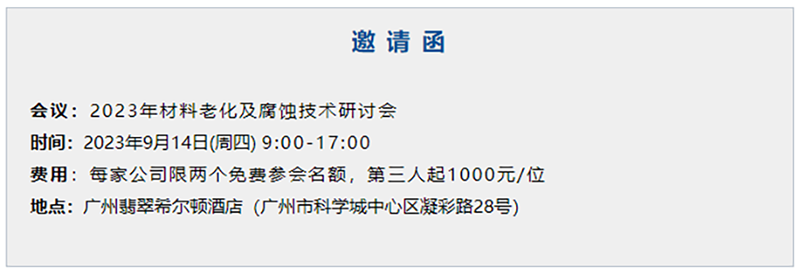 翁開爾聯(lián)合Q-Lab和廣州SGS,于廣州舉辦“材料老化及腐蝕技術研討會”,我們將對材料老化機理、光老化測試標準解讀和案例分析,腐蝕測試機理、標準解讀,老化和腐蝕測試后評價等進行詳細的講解和交流。期待您的參與!
